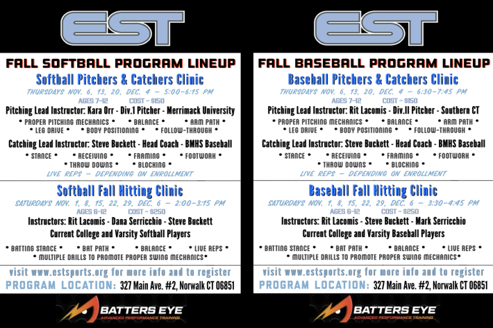 Elite Sports Training, founded in 2011, provides high quality baseball and softball camps, clinics and instruction for young players in Stamford, Norwalk and surrounding towns. Instruction focuses on the fundamentals of fielding (both infield and outfield), batting, bunting, base running and proper throwing technique. Players attending our camps and clinics will be actively involved throughout the entire sessions, learning the fundamentals of baseball through drills, activities and situational play. They will also have an opportunity to showcase their learned techniques during game play at the end of each day while focusing on baseball and softball IQ (game play is during the summer camps).
