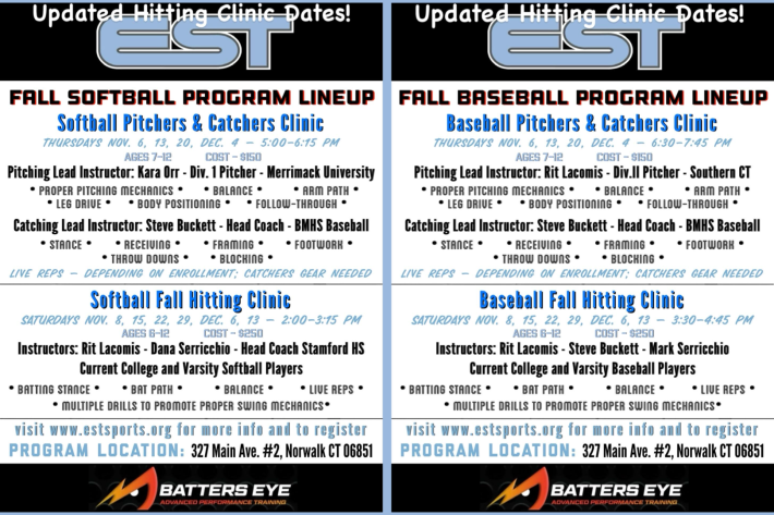 Elite Sports Training, founded in 2011, provides high quality baseball and softball camps, clinics and instruction for young players in Stamford, Norwalk and surrounding towns. Instruction focuses on the fundamentals of fielding (both infield and outfield), batting, bunting, base running and proper throwing technique. Players attending our camps and clinics will be actively involved throughout the entire sessions, learning the fundamentals of baseball through drills, activities and situational play. They will also have an opportunity to showcase their learned techniques during game play at the end of each day while focusing on baseball and softball IQ (game play is during the summer camps).
